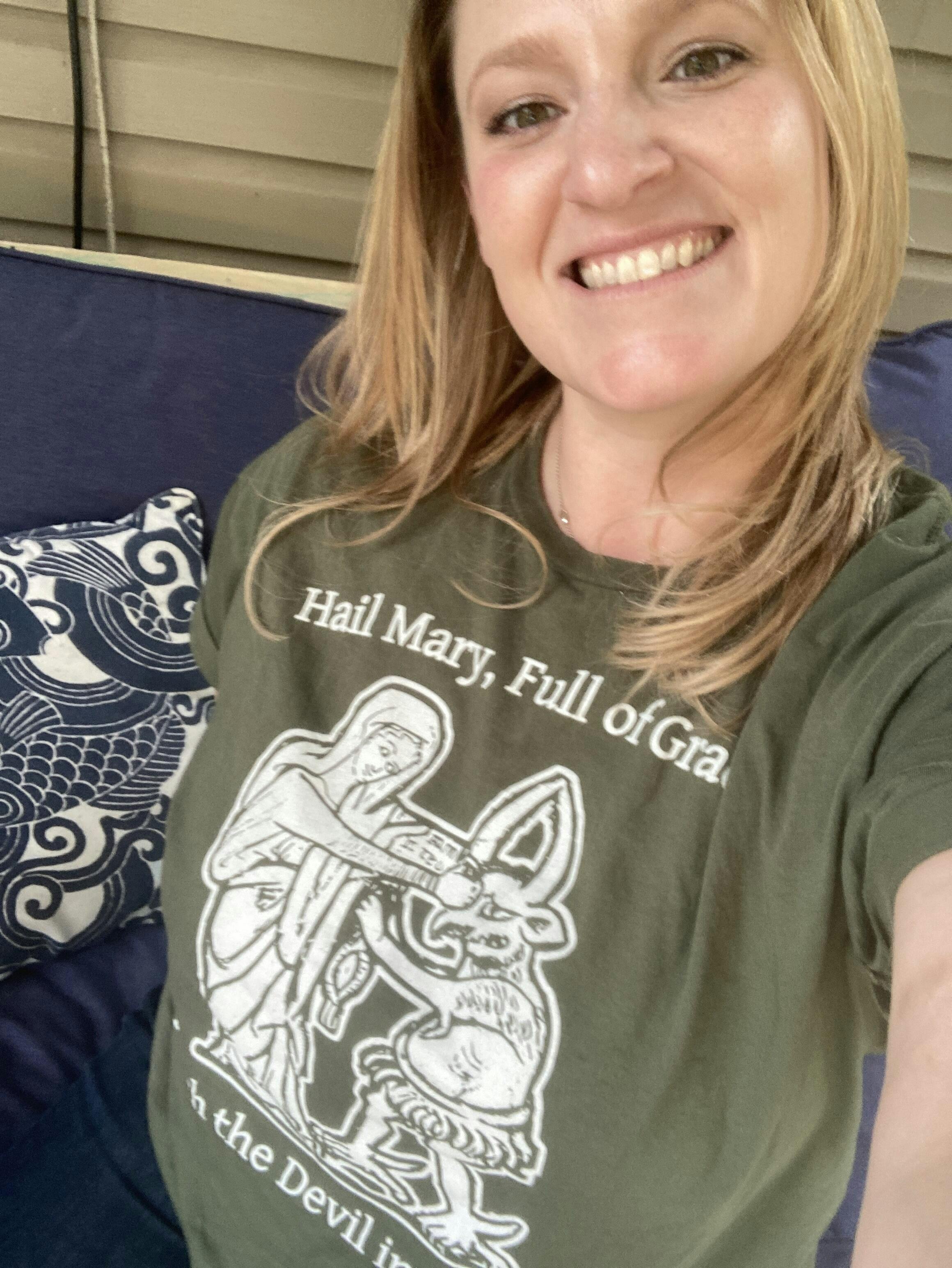 Love this t-shirt! It’s soft and exactly as described. I love that the card that came with it let me know that the group had said prayers for me the morning they packed it!