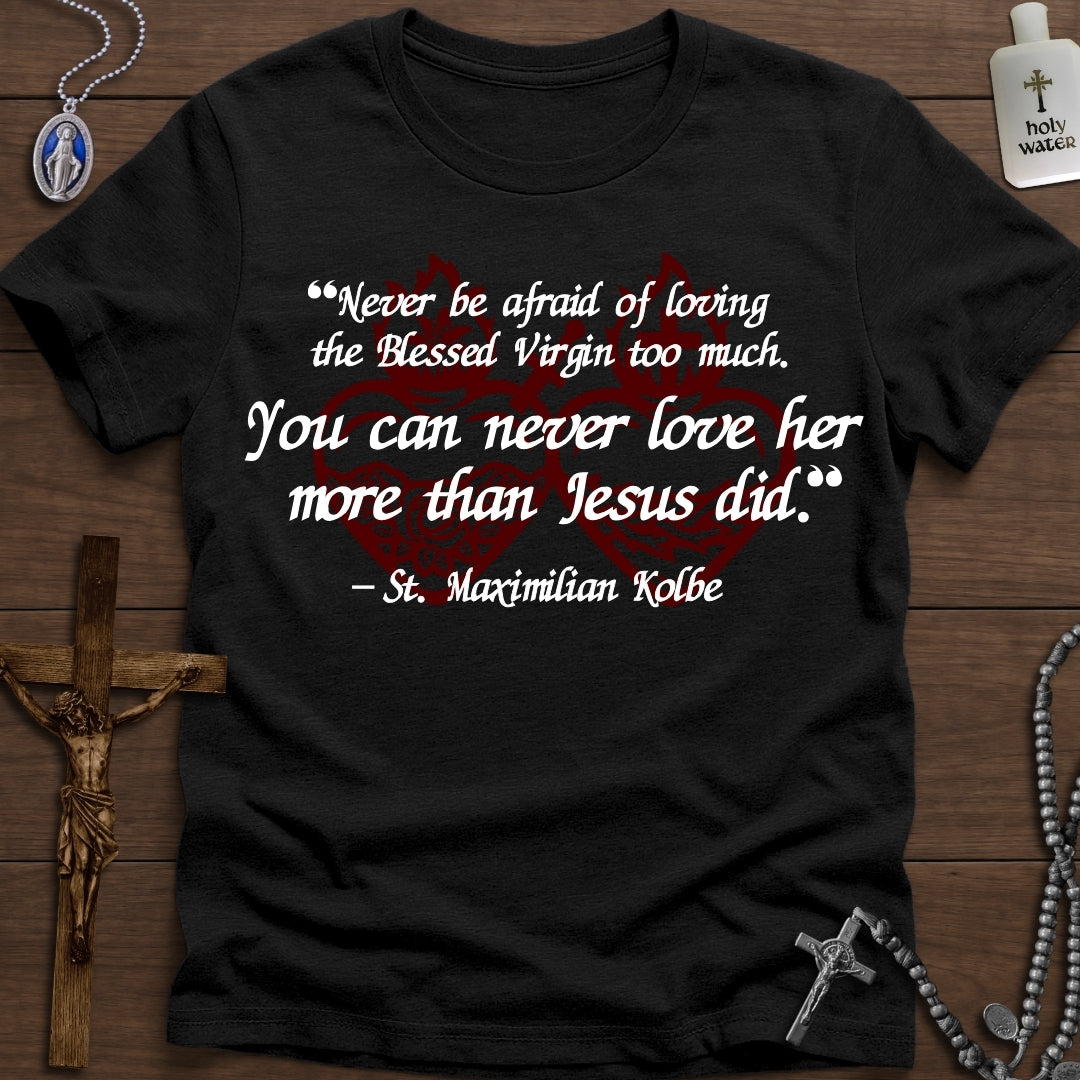 ❤️ “Never be afraid of loving the Blessed Virgin too much.” -St. Maximilian Kolbe 📿 Love Mary deeply, and you’ll find yourself closer to Jesus. The Sacred and Immaculate Hearts beat together.